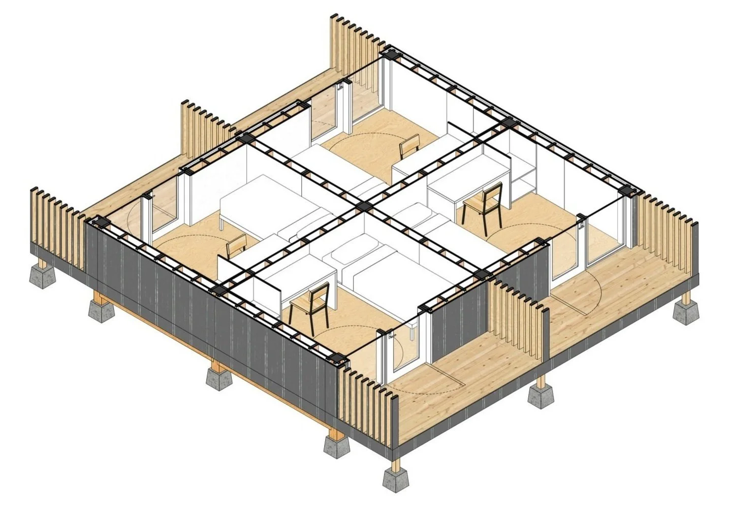 Our kit-of-parts are flat-packed and sequentially shipped for rapid assembly on site with a minimal crew.